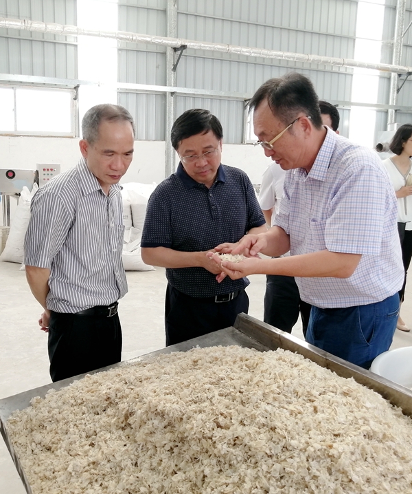 5月15日,碧桂園集團副總裁、碧桂園農(nóng)業(yè)控股CEO梅永紅一行在湛江市政府和湛江市農(nóng)業(yè)局有關領導的陪同下到我集團公司考察及洽談合作,王榮輝董事長親自接待了梅永紅一行并陪同參觀了湛江工廠。在王榮輝董事長的陪同下,梅永紅副總裁參觀了湛江工廠榮譽墻、蝦肽肥產(chǎn)品展示區(qū)、公司生產(chǎn)車間、產(chǎn)品包裝車間、蝦殼原材料存放區(qū)等。