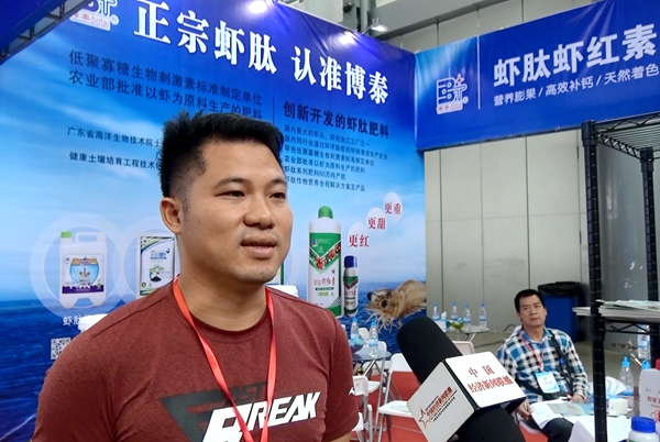 展會上,來自海南的李先生告訴記者,“我是從海南趕過來參加會展的,在會展上我看到了廣東博泰的“蝦肽”系列產(chǎn)品,我了解以后感覺挺不錯的,特別是“邦笑膨紅”這款產(chǎn)品對我們種植的芒果、龍眼、荔枝上色、膨大的效果應(yīng)該非常好,還有我們種的哈密瓜、辣椒、茄子等,用上這個產(chǎn)品應(yīng)該也不錯。所以呢,我準備回海南之后,把這個產(chǎn)品好好推廣一下,做海南的總代理?!辈稍L結(jié)束,李先生又補充一句,“這個產(chǎn)品聽用過的人說確實有效,我們非常有信心!”。