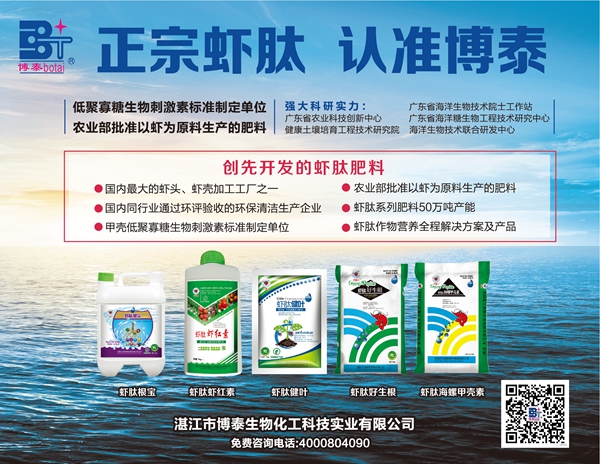 據(jù)廣東博泰公司展會負責人廖澤達告訴記者,博泰公司作為海洋殼寡糖、殼聚糖原料供應(yīng)商、蝦肽營養(yǎng)全程解決方案供應(yīng)商以及海洋特種系列肥料品牌代加工商,具有以下優(yōu)勢: