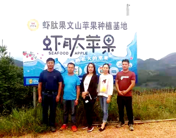 (蝦肽果文山蘋(píng)果種植基地前合影留念)