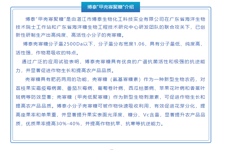 博泰“甲殼寡聚糖”應(yīng)用于農(nóng)作物生長(zhǎng)方面的作用